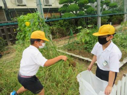 学習園に生えていた雑草の除去作業をしていました。