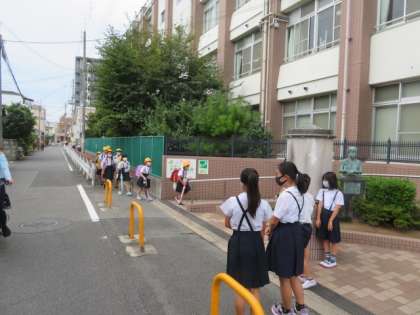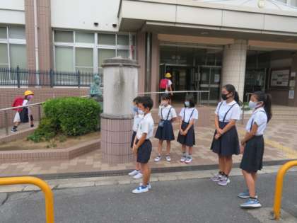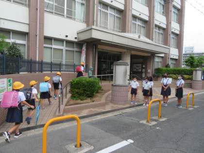 登校してくる児童は、蒸し暑さのせいか昨日よりも元気がないように見えました。