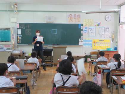 1年2組は、今日から始まる自主学習の説明をしていました。