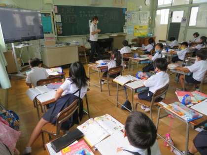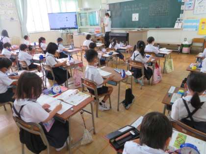 大型モニターのデジタル教材や手元の時計教材を操作したりして、時計についての理解を深めていました。