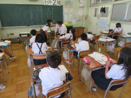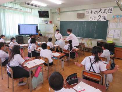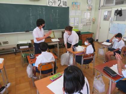 重たい荷物を持っている人にどのように声かけをしたらいいか、実際の場面を想定して行っていました。
