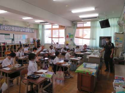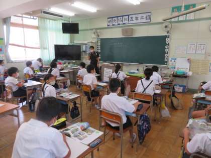 5年生では、理科と英語を1・2組担任が交換して、授業を行っています。
