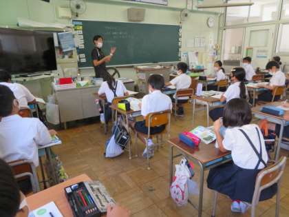 2時間目には、1組担任が2組の理科の授業をしていました。