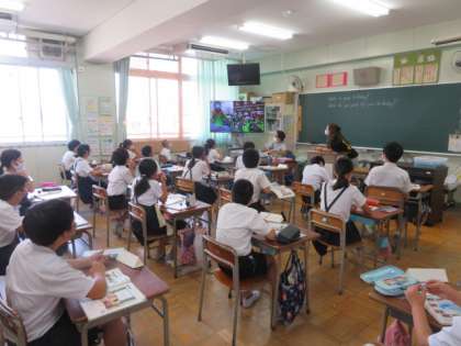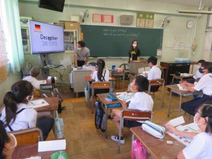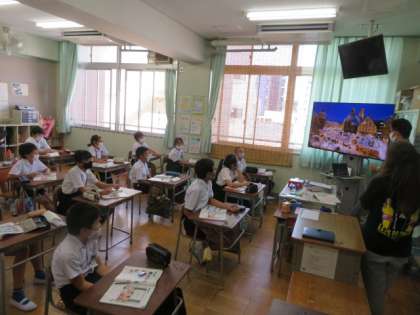 1組に2組担任とC-NETの先生で英語の学習をしていました。