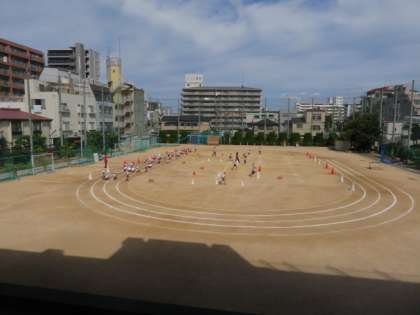 体育の時間に運動会に向けて、折り返しリレーに取り組んでいました。