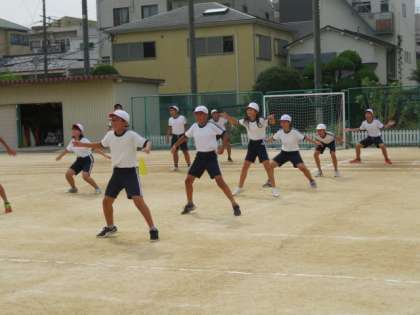 6年生は、昨年から足が速くなるダンスをしていたこともあり、運動場でもしっかりとダンスをしていました。