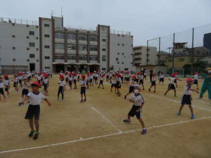 天候に配慮して、1時間目に足が速くなるダンスをしました。