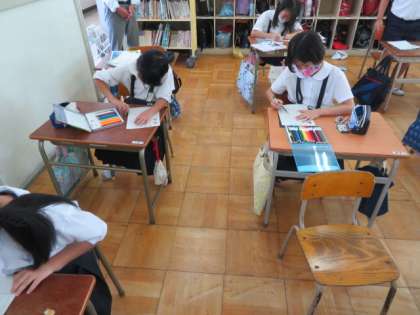 そして、観察記録プリントに絵や文章で記録をしていました。
