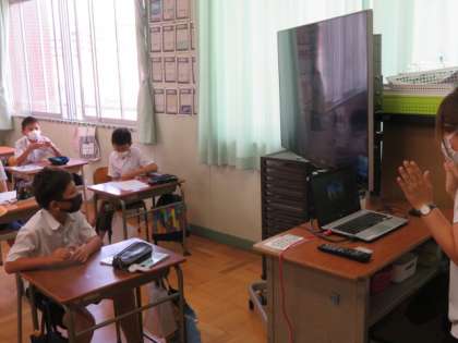 タブレット端末の台数が限られているため、1組の後に2組がTeamsを使ってのリモート授業をします。