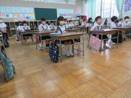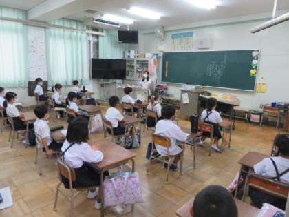 子どもたちは、姿勢よく放送朝会を聴いていました。