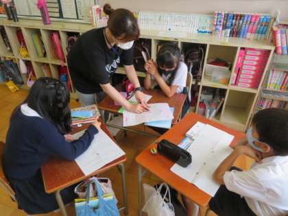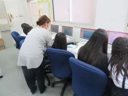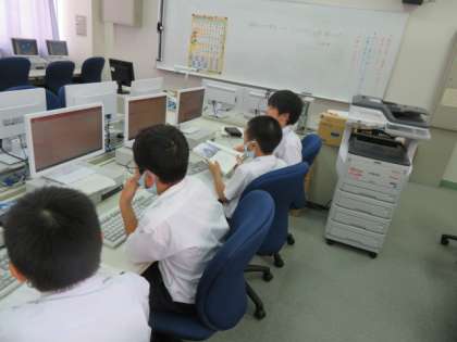 今日も、教室ではプリントにまとめたことをもとに打ち合わせをし、パソコンルームではプレゼンテーションソフトを使って発表資料を作成していました。