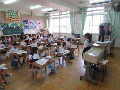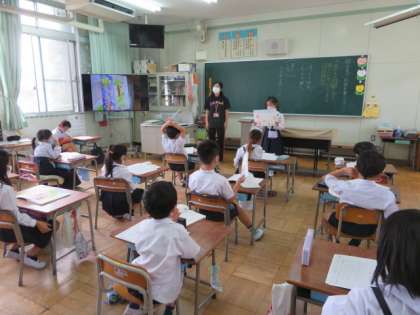 3時間目は、みんなの前で自分が考えたお話の発表をしていました。