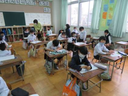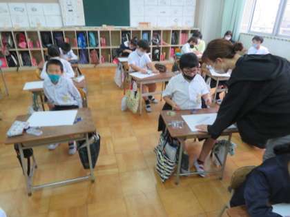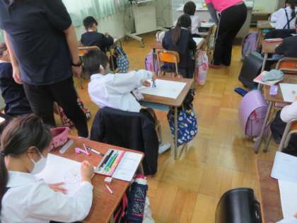 その後、コンパスで書いた線をフェルトペンでなぞり、できた模様に色鉛筆で色塗りをしたりしていました。