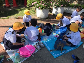 予約していたパンダの見学もでき、これまでまわったいろいろな動物たちのことも話しながら、仲良くお弁当をいただいていました。