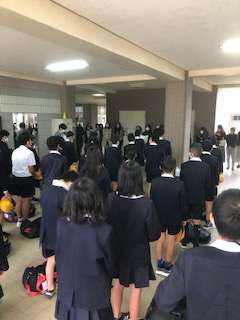 全員参加の修学旅行、出発式です。代表児童の挨拶は、立派でした。