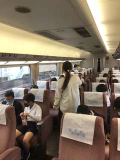 定刻に発車しました。地域クーポンに続いて、酔い止めのアメが配られました。