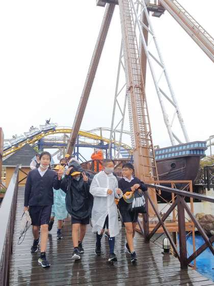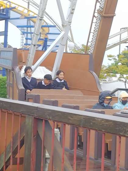 雨にも負けずに、絶叫系のアトラクションにもチャレンジしています。