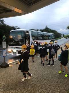 賢島駅に到着しました。全員元気です。これからホテルまで少し歩きます。