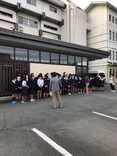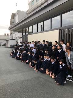 ホテル前で、全員揃っての学年集合写真を撮ります。