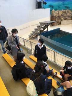 いい場所で、アシカショーの観覧をするために早くも集まって来ています。