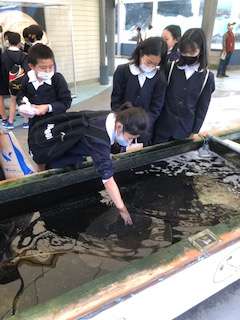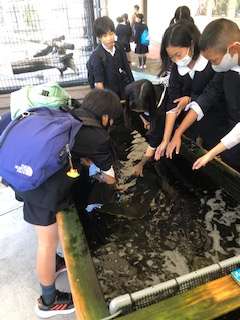 魚たちに直接触れることのできるゾーンに子どもたちがやってきました。
