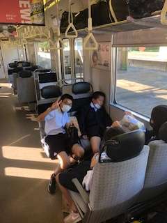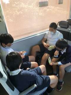 ほとんどの子どもが、起きています。とても元気です。列車は、東青山駅を通過しました。