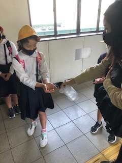 弁天町駅で、地下鉄に乗り換えます。その間に、手の消毒タイムです。