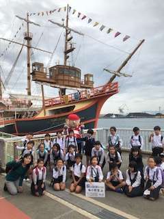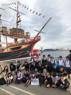 サンタマリア号をバックにクラスごとに記念撮影をしました。