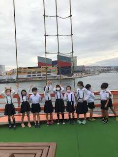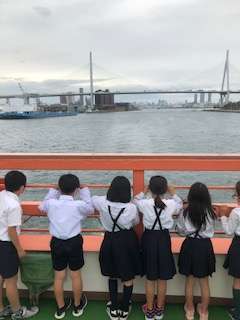 みんな船長気分で、大阪港を巡っています。