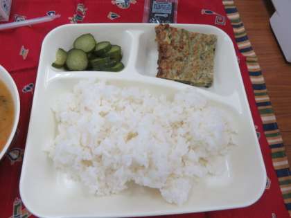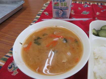 今日の献立は、お好み焼き、豚汁、きゅうりの梅風味でした。
