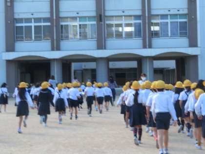 その後、津波を想定した二次避難訓練で、校舎4階に向かいました。