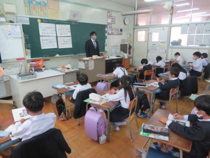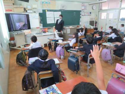 子どもたちは、写真や動画資料、ワークシートをもとに意欲的に学習をしていました。