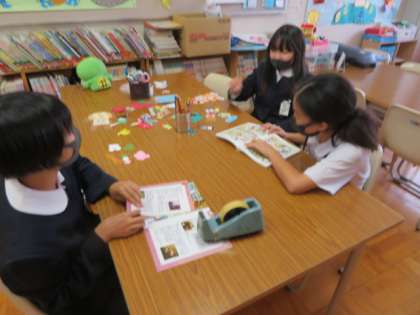 また、傷んだ本を直したり、栞作りをしたりもしていました。
