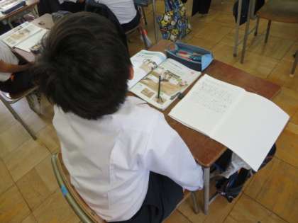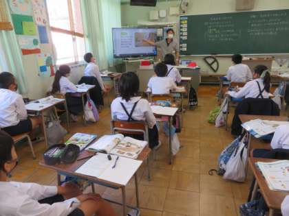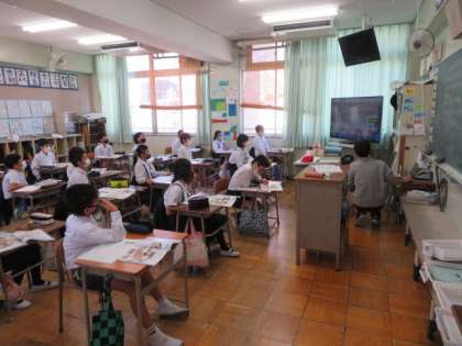 5年2組では、5年1組の担任が、理科と英語の授業を交換して理科の授業をしていました。