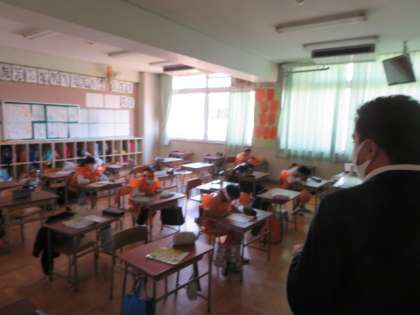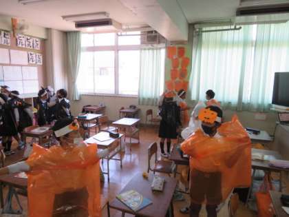 3年1組では、ハロウィンにちなんで、C-NETの先生にサプライズのお楽しみをプレゼントしていました。