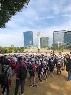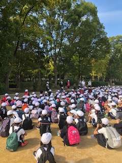 大阪城公園、太陽の広場でオリエンテーリング開会式を行いました。