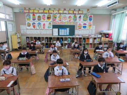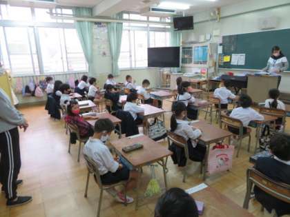 校長からの話、生活指導担当の話、看護当番担当からの話がありましたが、児童はしっかりと話を聴いていました。