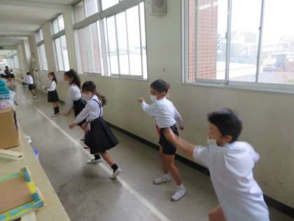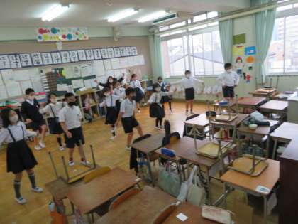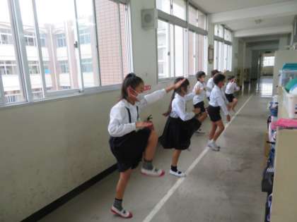 教室の子どもも廊下の子どもも一緒になって、最後まで踊り切りました。