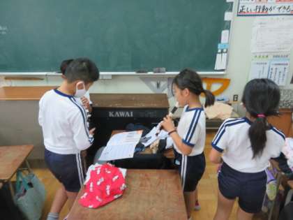 教室でリコーダーを楽しんだり、ホールで学習発表会に向けての確認をしたり、林間学習に向けて相談し合ったりするなど、雨の日の休み時間も有意義に使っていました。