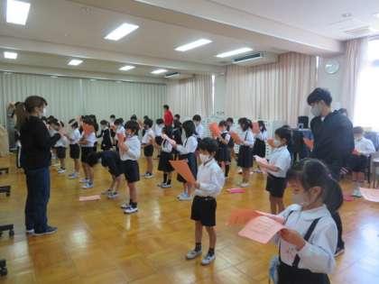 今日は、様々なメッセージや町たんけんで調べた地域のことが盛り込まれた発表の台本の読み合わせをしていました。