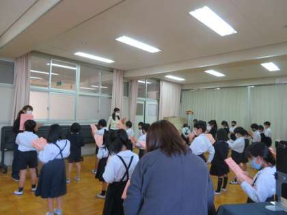 学習発表会で、2年生は「大すき この町 大すき 柏里小学校」というテーマで発表します。
