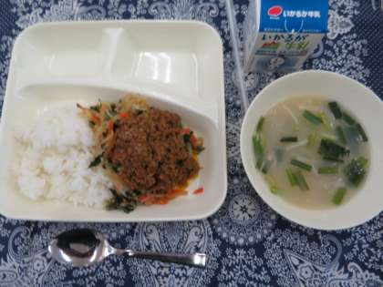 献立は、ドライカレービビンバ、トック、牛乳でした。