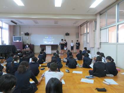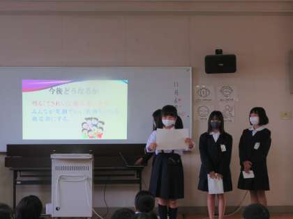 6年生が国語科で学習していた「町の幸福論」の学習の発展として、実際に柏里地域で自分たちが問題と考えるところをとらえ、町の未来を見すえて具体的な解決方法を各グループごとにプレゼンテーションで提言していました。