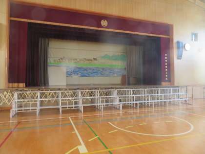 教職員も放課後に講堂ステージの前にエプロンステージやひな壇を出したりしました。