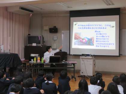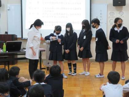 学校薬剤師による6年生対象の「お薬講座」が、多目的室で行われました。