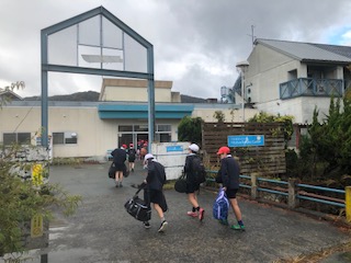 びわ湖青少年の家に無事に到着しました。パラパラと雨が降っているので荷物をすぐに運び込みました。