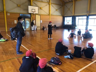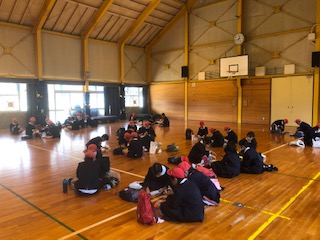体育館でお弁当をいただきます。