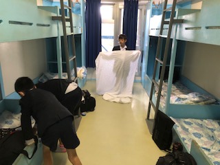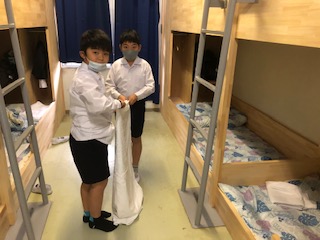 早い班は、シーツも返して体育館に荷物を運んでいます。