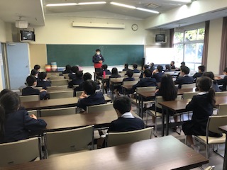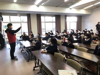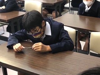 塗り箸の説明や作り方について話を聞いたり、見本を見せていただいたりしています。