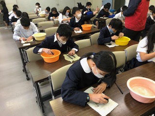 いよいよ塗り箸作りのスタートです。削り過ぎないように気をつけて。
